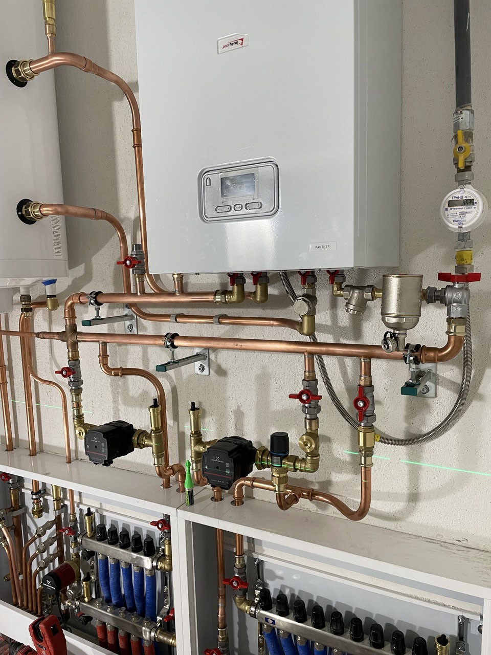 Командой Heatman был выполнен монтаж ХВС, ГВС, теплых полов, отопления, канализации, вентиляции и электрики; настроена автоматика. Все виды монтажа выполнялись одной командой – у Заказчика не было необходимости координировать работу разных бригад.